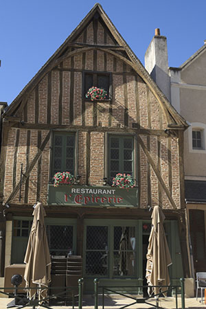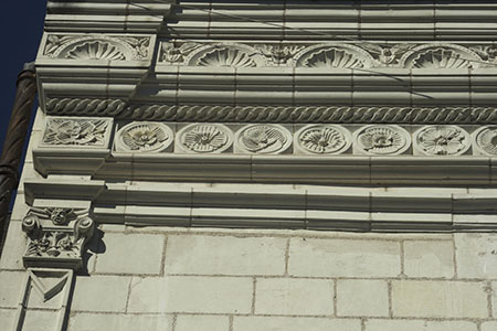 Many half-timbered houses (Rue Victor Hugo, Rue de la Concorde and Rue Entrepont) show a resemblance to the late Gothic tradition. Hôtels particuliers (detached private houses) are distinguishable by their height, the use of fine and durable materials, and a visible resemblance to the local château. With a gable or side wall giving onto the street, they feature sculptured cornices, pilaster-framed windows, and their façades have a certain order to them. This is the case for the Hôtel Morin (now the town hall), and the Hôtel Joyeuse. Some researchers attribute the latter to the Italian architect Fra Giocondo and its garden to Pacello da Mercogliano. The churches St. Denis's and Notre-Dame-en-Grève, now known as St. Florentin's, were also refurbished. In the surrounding countryside, manors were already being built in the "Italian style", including Clos Lucé in brick and Château Gaillard in limestone.